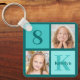 Chic 2 photo square keychain for a trendy girl's birthday. Celebrate your child's birthday with two beautiful photographs of them on this add your own photograph gift with turquoise squares. Add your kid's name and age.