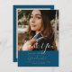 A modern, chic photo Graduation thank you. The front can be any favourite grad photo with the trendy script THANK YOU, Class of Info and Grad Name on the background colour of your choice. The back gives a text template for generic message and room for more. Change the background colour for school theme or to complement your grad photo.