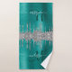 Chic Teal Silver Dripping Glitter Monogram Name Bath Towel Set