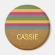 Chic Textured Stripes Customisable Magnet. This design features textured stripes on a distressed brown paper background. This grungy yet vibrantly coloured magnet may be customised with a name or other personalised text. Add a little style and flair to your fridge or other magnetic surface!