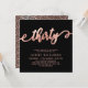 Elegant Chic Black and Rose Gold Thirty Script 30th Birthday Invitation. This modern birthday party invitation template for woman features stylish „thirty” text in huge faux rose gold foil swirly handwritten calligraphy (or typography) script with swash tail font, party details in blush rose gold colour on black background. At the reverse side faux rose gold foil abstract swirly wave circle pattern on black colour background. Perfect for celebrating, girly thirtieth milestone birthdays in style, this invitation adds a touch of glamour to any feminine party.