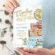 Vintage Travel Floral Bridal Shower Invitation in Blue and Gold