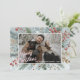 This holiday card combines a unique and classic style, featuring a trendy, elegant botanical wreath bouquet. It includes the classic "Merry Christmas" quote and allows for customisation with your family photo, name, and the current year. Meanwhile, the back provides an excellent opportunity to write a personalised seasonal greeting or poem, making your message truly special.