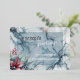Unique, classic, trendy, pretty, and decorative corporate Holiday card. Cute Happy Holidays greeting text and room to customise or personalise with a message of your choice on the rear of the card. Framed by dark wine red berries and dark teal blue foliage wreath bouquets on a classy, white and blue coloured marbled white background.