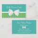 Impress new clients and customers with these elegant boutique business cards with turquoise and lime green stripes and a chic white bow. Personalise by adding your name the name of your fashion salon and your contact info. Flat printed image, NOT actual ribbon.