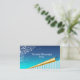 Elegant turquoise to aquamarine gradient business card, with graphics of a curled up bottom corner that reveals a gold tone colour, on the backside and a turquoise and white striped pattern under the top layer. An ornate white flourish decorates the left corner of the card and white custom text is ready to personalise to suit your needs. Fun optical illusion card that is elegant at the same time, a real attention grabber.