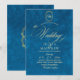 Elegant stylish Turquoise and gold modern wedding invitation with an elegant handwritten font with curls and a monogram of the bride and groom. Classy and elegant, simple and modern invitation.
