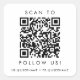 This chic typography business social media QR code square sticker is perfect for a small business owner. The simple design features classic minimalist black and white typography with a rustic boho feel. Customisable in any colour.