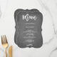 Modern and chic customisable menu with faux chalkboard background and beautiful brush script.