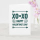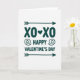 This card features a simple white background with dark teal lettering that stands out right away. Near the top, the text reads “XO ❤️ XO,” with a small red heart placed between the two XOs. The letters look like smooth, rounded print, and the message sits neatly in the upper part of the card. Below that, “HAPPY VALENTINE’S DAY” appears in the same dark teal, centered and spaced to feel balanced. Small arrow shapes point inward around the lower words, and tiny spiral curls sit near “HAPPY” to add a gentle detail. The overall look feels calm and modern, and the deep teal color gives it a steady, thoughtful kind of affection.