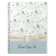 Elegant notebook done in a cottage chic style, with vintage illustrations of delicate blue bells, against a white background. Graphics of an ivory ribbon and bow runs across the bottom, with a pale blue, on the bottom. Text in black is ready to personalise for your big day. Great guest sign in book for your wedding ceremony and reception.