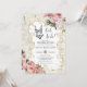 Personalise this shabby chic floral lingerie bridal shower invitation with your own wording easily and quickly, simply press the customise it button to further re-arrange and format the style and placement of the text. This elegant invitation features an antique gold frame adorned by vintage blush pink French roses and a chic old letter background. Matching items available in store! (c) The Happy Cat Studio.