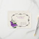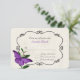Stunning vintage look wedding RSVP response card, done in a distressed ivory background, with a curly black framed text area. Vintage graphics of a purple butterfly decorates the lower left corner of the card. Personalise the black and purple text to suit your needs. Matching wedding products available.