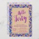 Chic Violet Blue Mosaic Hello Forty 40th Birthday Invitation