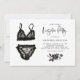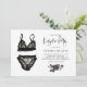 Black and white theme lingerie party invitation. It features watercolor illustration of black lace lingerie and black flowers with modern calligraphy. Personalise by adding names, date, time, venue and other event details. This black lingerie party is perfect for any bridal shower theme.