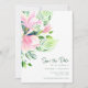Chic Watercolor Magnolia Flowers in Pink Save The Date