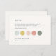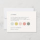 This chic and elegant wedding attire dress code card includes a soft color palette of light greyish seafoam,butter yellow, blush pink, blush peach and a grey green. The design features a contemporary set of fonts against a light ivory background. This item forms part of a full wedding suite which includes matching stationary items.