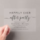Chic clear acrylic invitation for your wedding reception or after party. "Happily Ever After Party" is written in a mix of simple typography and an elegant script with swashes.
