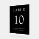 Chic black acrylic wedding reception table number sign featuring "Table" and the table number in elegant white serif typography, and your names and reception date in modern white typography. Create each table number and add to your shopping cart one at a time, then check out once all numbers are in your cart.