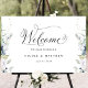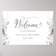 Welcome your guests to your wedding with this elegant sign. Ability to change text to any other event. Design with modern hand written calligraphy details and exquisite watercolor greenery and white and blue flowers framing the sign. 36" x 24" is simply our default size, you have the ability to choose from a great variety of size options. Easy to frame or glue/staple to inexpensive MDF for display. "IMPORTANT NOTE: This sign is in premium poster paper style, easy to frame or glue/staple to inexpensive MDF or foam board for display. If your prefer this sign prepared for display already in a foam board, please follow this easy steps: on this sign product page, scroll up, until you see a section with images called "Transfer design to a product". Use the arrow on the images to look at all the options, until you reach the "Foam Boards" option. Click on it, and it will transfer the design into a foam board for you. Initially sometimes it transfers the design into a very big foam board size, nevertheless you can change the sign into the size you need right there on the product page and even see how it looks already in a stand. When you add this design into your shopping cart, it will tell you the back side is in black. Don't worry about it, as this only means that the back of the sign will be white. If you need help, please send me a message and I'll get back to you as soon as possible". Part of our "Elegant Bliss" collection with a variety of coordinating invitations, insert cards, rsvp cards, mailing accessories, save the dates, thank you cards and event signs and products.