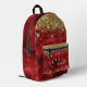 Chic Whimsical Red Black Gold Glitter Monogram Printed Backpack