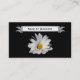 Chic White Daisy on Black Background With Name Business Card