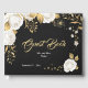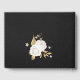 beautiful elegant white flowers with some gold leaves chic black guest book.