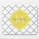 Chic White Grey Quatrefoil Yellow Monogrammed Name Mouse Pad
