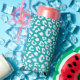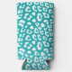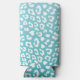 Chic White Leopard Spots on Turquoise Seltzer Can Cooler