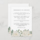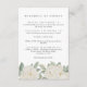 This elegant boho chic schedule of events enclosure card features grey lettering with romantic border of white roses in soft palette of white ivory and sage green.
