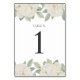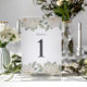 Chic botanical table number cards feature border of white and ivory roses and soft green foliage in watercolor soft colours framing your table number in classic grey font . Matching "White roses garden wedding collection"