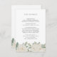 This elegant floral boho chic DETAILS enclosure card features grey lettering with romantic border of pristine white roses in soft palette of white ivory and subtle sage green..