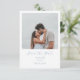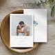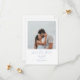 This beautiful oh so chic and minimal, white wedding 'Save The Date' card showcases your couple photo, elegant brush script text, event date and address, along with a contemporary set of fonts in dusty blue. The back includes additional optional text. Leave this text box empty if no text is required here. Youthful and trendy, this card sets a joyful tone. Use Edit tool to change the background colour if you prefer.