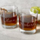Chic set of whiskey glasses for your bachelorette party with your guests' names monogrammed in an elegant white calligraphy script.