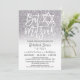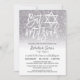 This elegant and girly wedding Bat Mitzvah invitation is perfect for the stylish and trendy young teenage girl. It depicts a faux printed sparkly silver glitter and white background ombre gradient on the front with custom white brush script typography with the Star of David and an option to include your daughter's Hebrew name. On the back are white and dazzling silver-grey ombre. It's elegant, chic, modern, glamourous, and pretty!