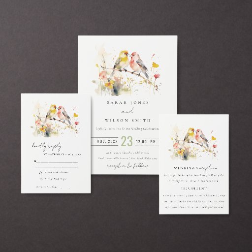 Wild Botanical Watercolor Love Birds WeddingDesigned by YellowFeb Studio