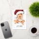 Celebrate the season with this chic holiday greeting card featuring a stylish woman wearing a classic Santa hat and holding a festive Santa mug. Accented with a real gold foil frame and a customisable "20XX" year also in foil, this design adds a touch of luxury to your holiday wishes. Perfect for sending modern and personalised greetings to friends and family during the holidays.