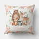 Chic Woodland Animals Blush Pink Floral Nursery Cushion