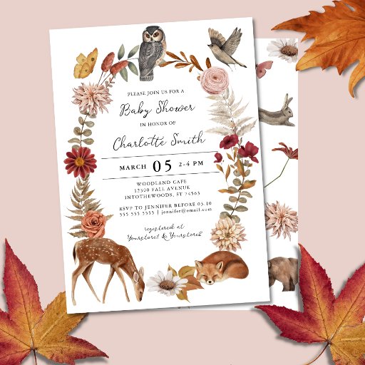 Chic Woodland Forest Animals Neutral Baby Shower Invitation