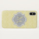 A chic yellow art deco arched scallop pattern Barely There iPhone X Case with a soft grey quatrefoil badge you can personalise by easily adding your own monogram and name. This is part of the Meadowlark Scallops Harbour Mist Monogram Spring Collection.