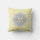 Chic Yellow Art Deco Scallops Grey Monogram Name Cushion