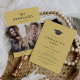 This chic yellow grad cap photo double graduation party invitation is perfect for a modern outdoor party. The simple design features classic gold yellow and black typography with a black and gold watercolor graduation hat.