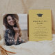 This chic yellow grad cap photo graduation party invitation is perfect for a modern outdoor party. The simple design features classic gold yellow and black typography with a black and gold watercolor graduation hat.