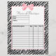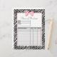 Make customer ordering easy with these chic and stylish zebra print boutique order forms embellished with girly light pink ribbon design tied into a cute bow. Personalise by adding the name of your store or online shop. These trendy order form templates have a place for a product description, quantity and sales price. Flat printed image, not actual ribbon.