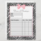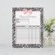 Chic Zebra Print Light True Pink Ribbon Order Form