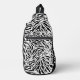 Chic black and white zebra pattern is printed on the front of this sling bag with your name on the side. Create for yourself or give as a gift.