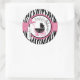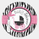 Wild and chic black and white zebra print with hot pink accents and a polka dot baby carriage with 3D-look ribbon trim girl baby shower gift label.