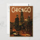 This dramatic skyline of Chicago at night is just the thing for vintage lovers with a love for cities. Chicago, Illinois vintage travel design.