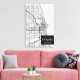 A Chicago, Illinois city map wall art canvas featuring a fun way to mark your location in your city! Follow the directions in the text field to edit and customise the map so that it is a perfect fit for you. A great idea for a bedroom wall, and a great conversation starter for the living room or office. Keep in mind that all elements of this item are unlocked and customisable, so have fun being creative.