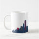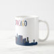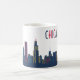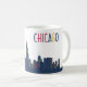 Modern and flat illustration featuring Chicago skyline with silhouettes of its classic buildings and cultural landmarks.